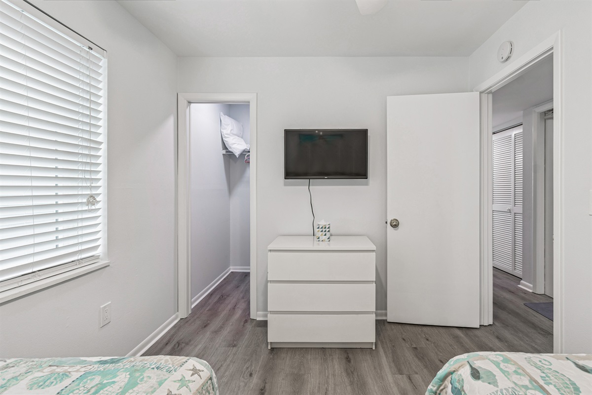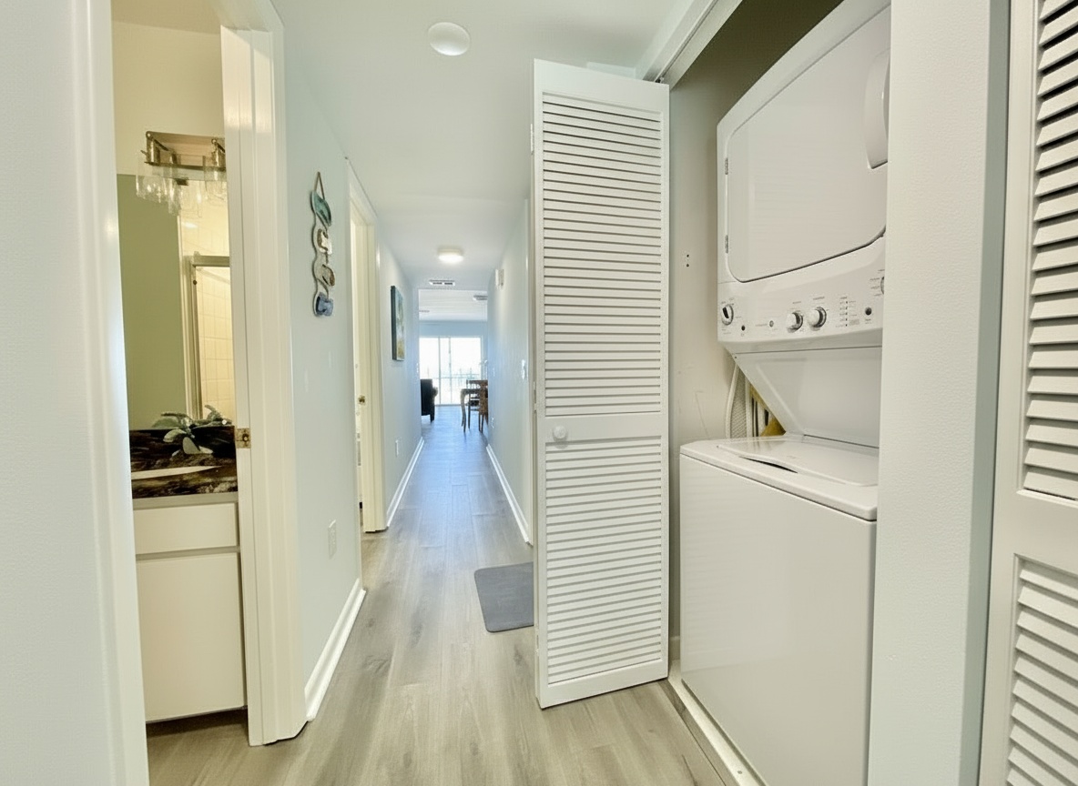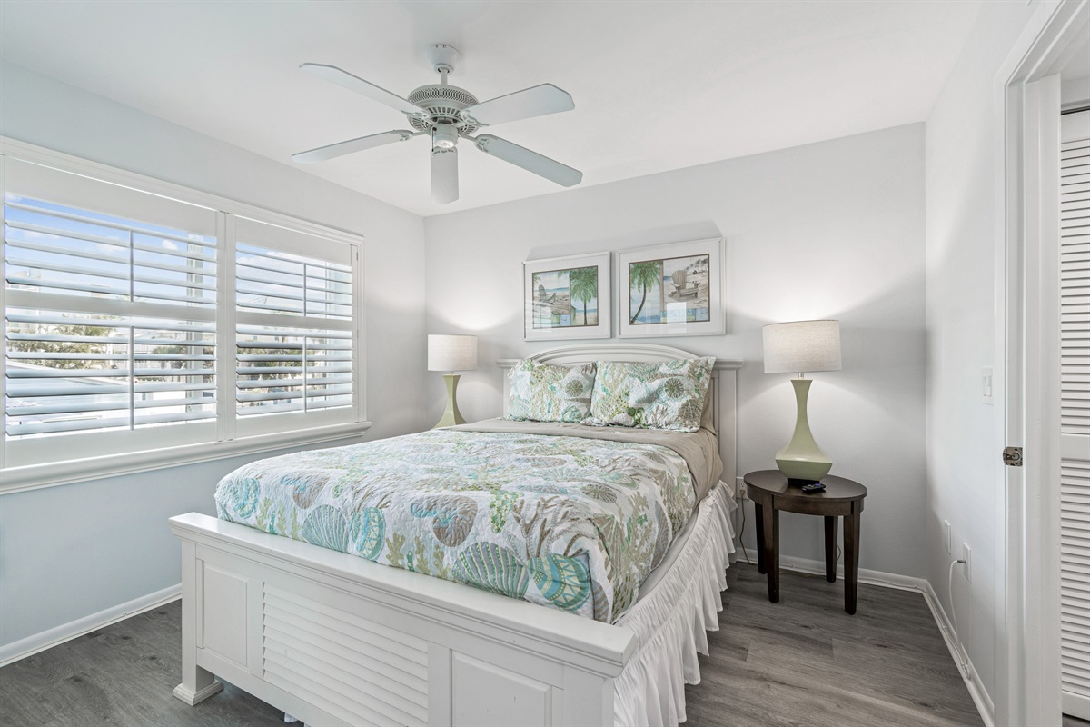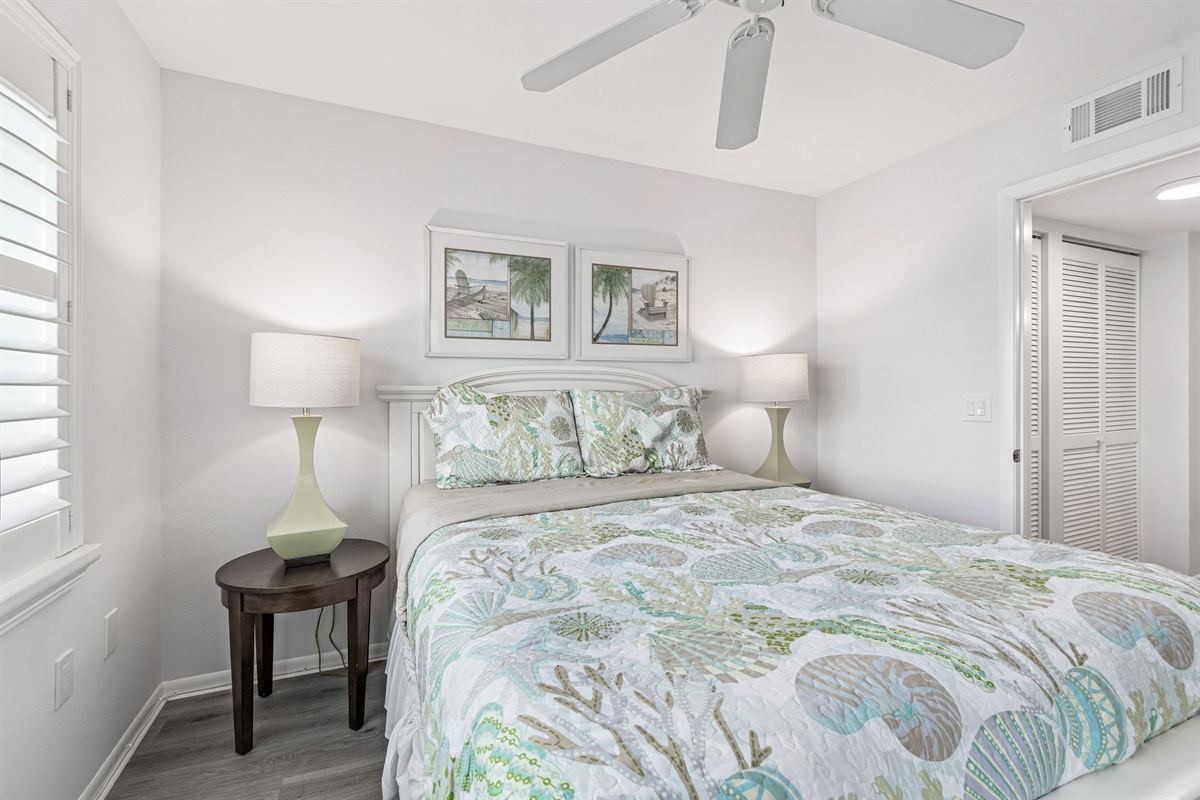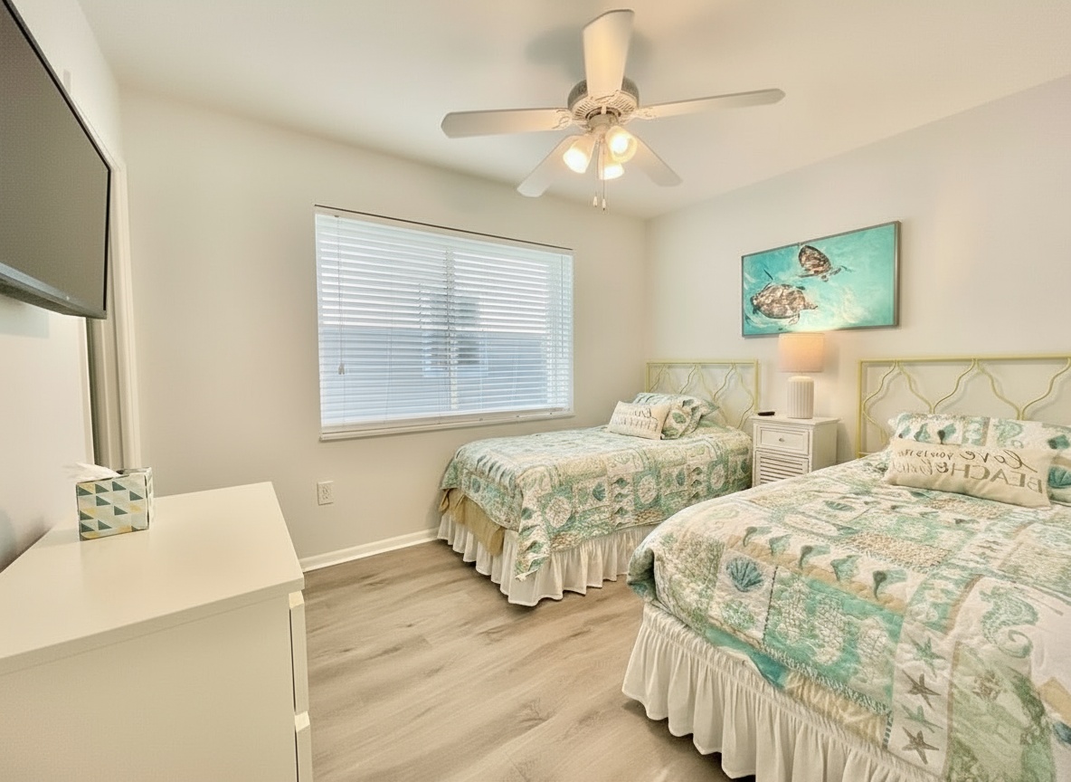 Our condo comfortably accommodates 4 guests, making it an excellent choice for family vacations or gatherings with friends. The primary bedroom features a luxurious Queen bed, while the second bedroom offers a cozy double bed. Each room is equipped with a mini-split AC system, ensuring everyone stays cool and comfortable. Both bathrooms are updated and include walk-in showers, providing a refreshing retreat after a day of beach fun. With ample closet space in each room, you’ll have plenty of room for your belongings.