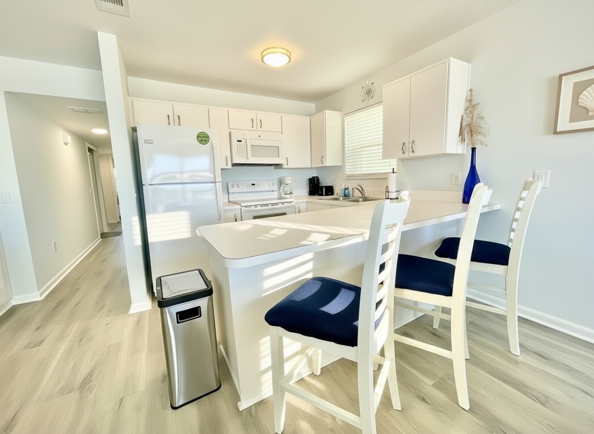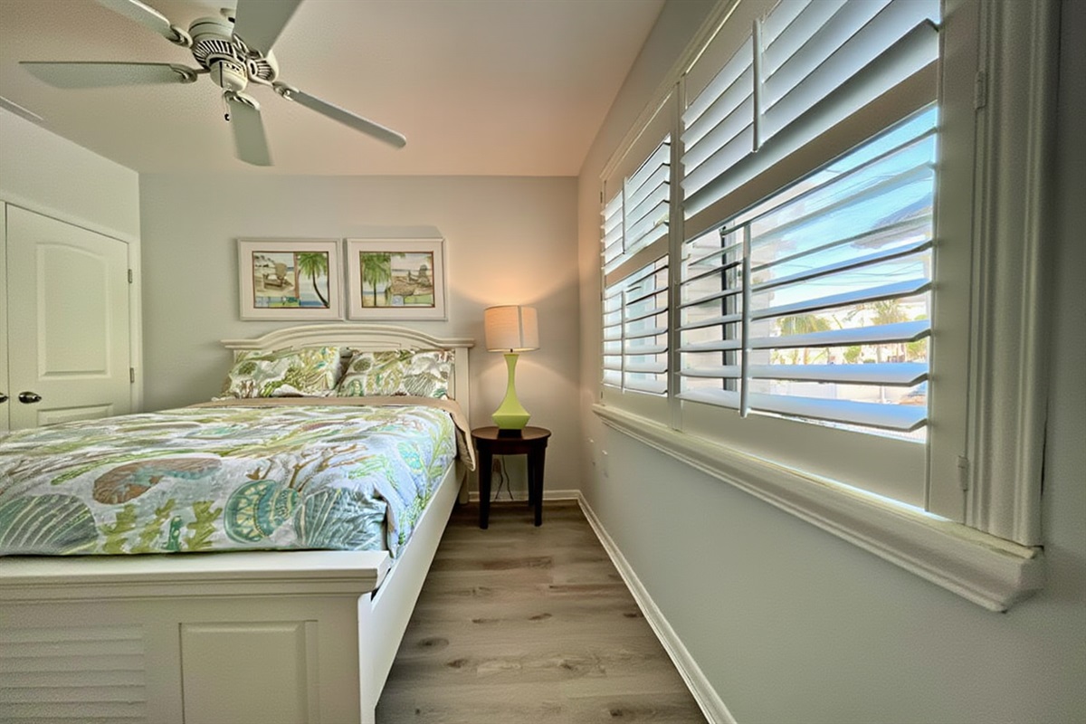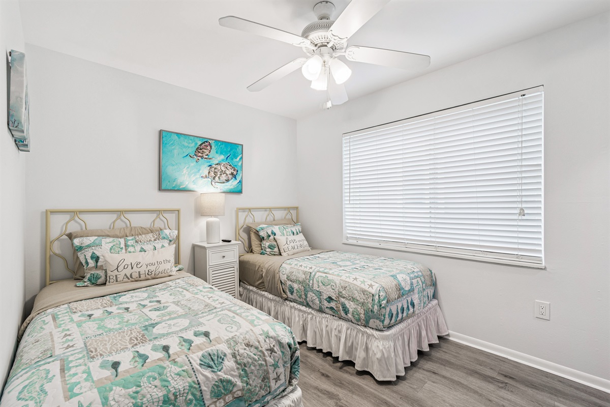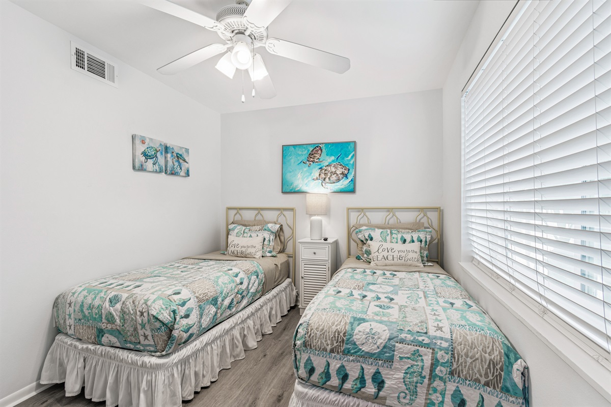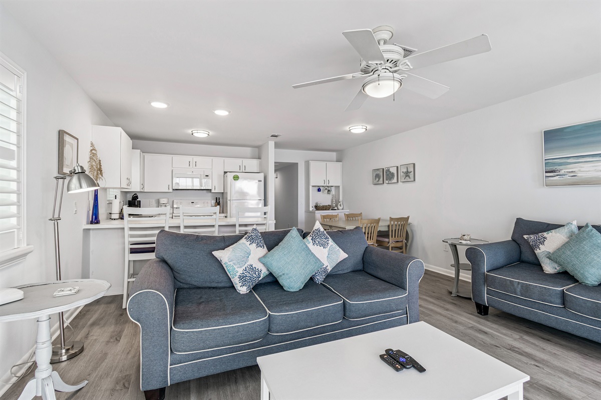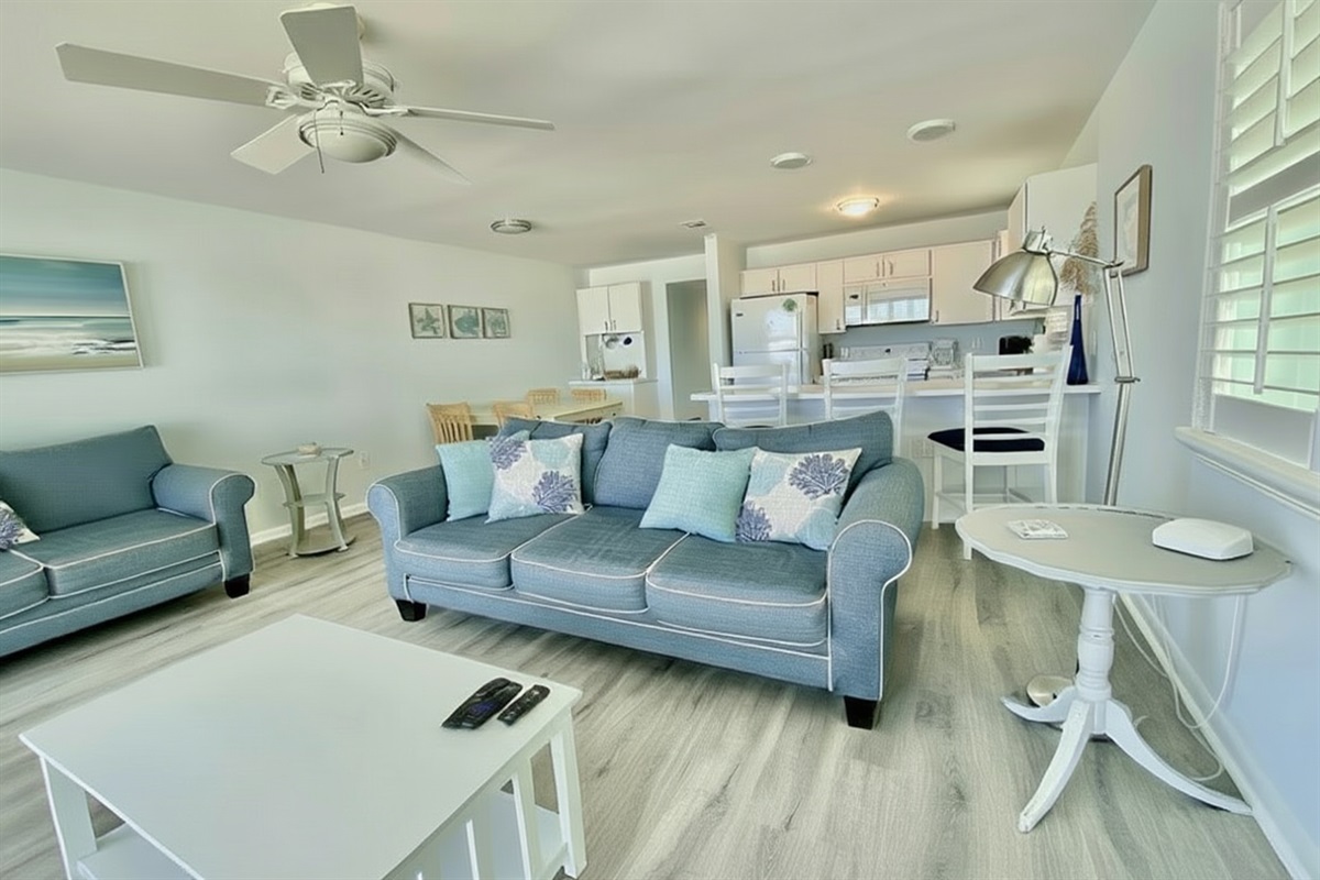 Our condo comfortably accommodates 4 guests, making it an excellent choice for family vacations or gatherings with friends. The primary bedroom features a luxurious Queen bed, while the second bedroom offers a cozy double bed. Each room is equipped with a mini-split AC system, ensuring everyone stays cool and comfortable. Both bathrooms are updated and include walk-in showers, providing a refreshing retreat after a day of beach fun. With ample closet space in each room, you’ll have plenty of room for your belongings.