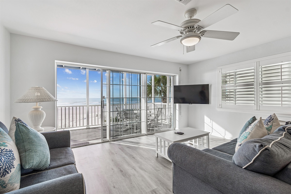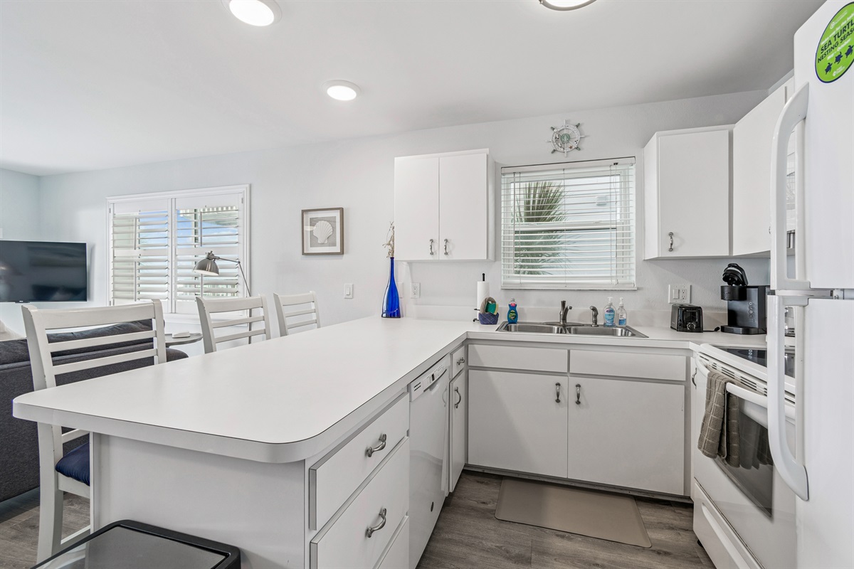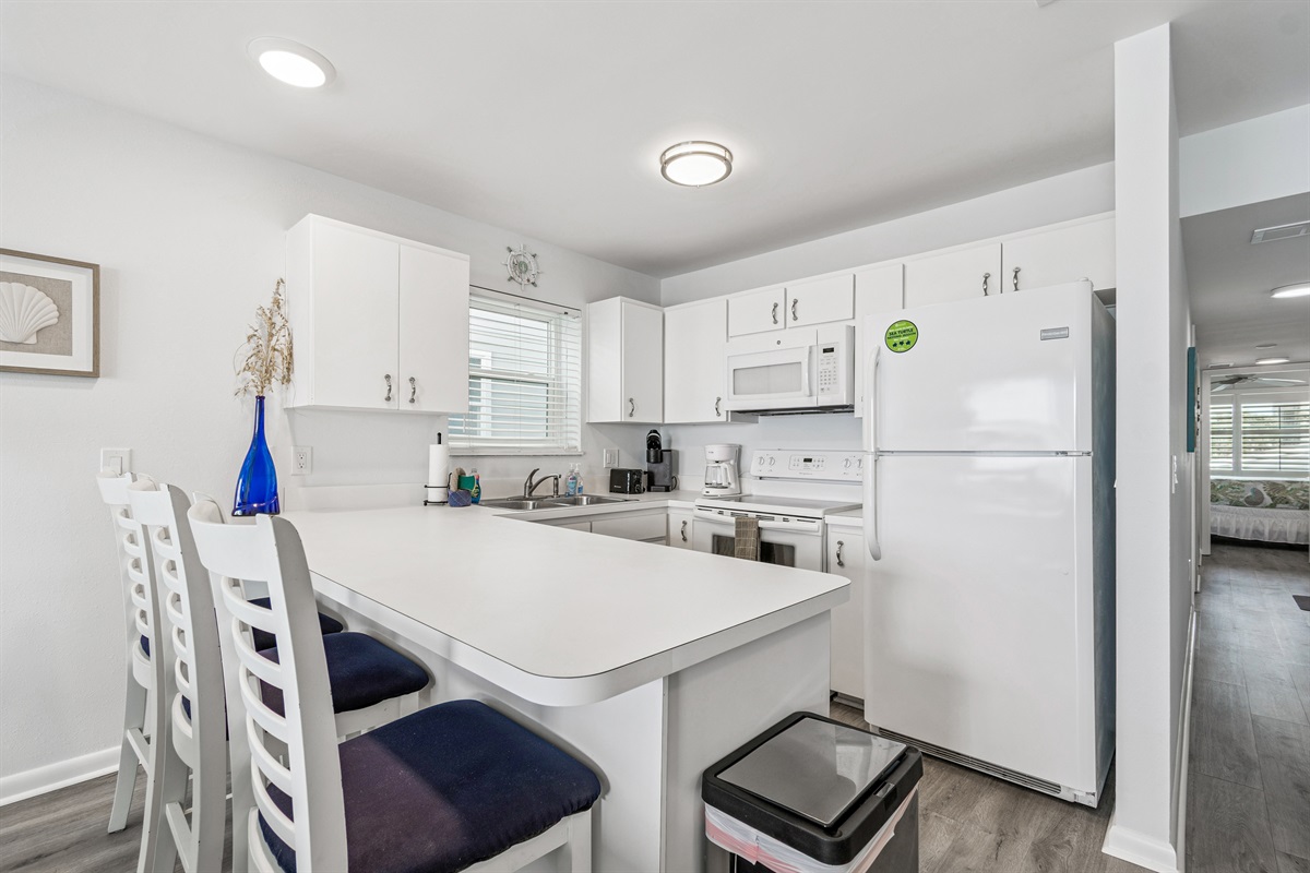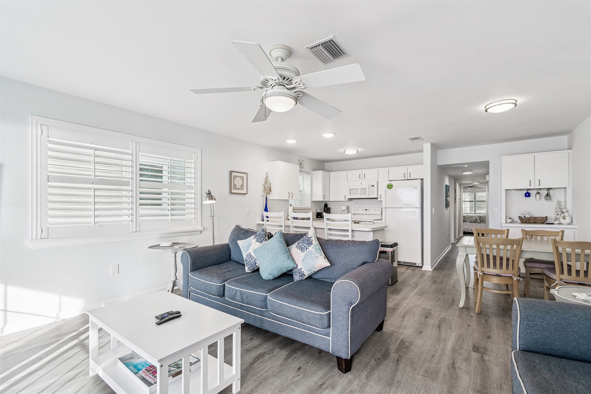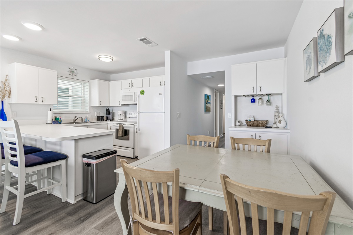 Our condo comfortably accommodates 4 guests, making it an excellent choice for family vacations or gatherings with friends. The primary bedroom features a luxurious Queen bed, while the second bedroom offers a cozy double bed. Each room is equipped with a mini-split AC system, ensuring everyone stays cool and comfortable. Both bathrooms are updated and include walk-in showers, providing a refreshing retreat after a day of beach fun. With ample closet space in each room, you’ll have plenty of room for your belongings.