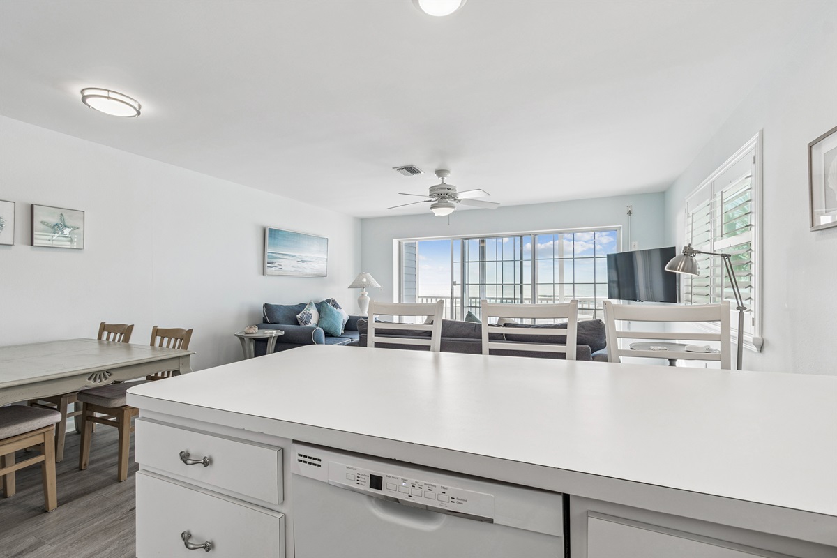 As you enter Gulf House Beach Condo, you’ll be welcomed by a soothing coastal atmosphere. The living area is an inviting space for gathering after a day spent soaking up the sun and enjoying the waves. Imagine unwinding in the airy living room, where expansive windows frame breathtaking views of the Gulf and its endless waves. The abundance of natural light enhances the bright and cheerful environment that defines beach living.